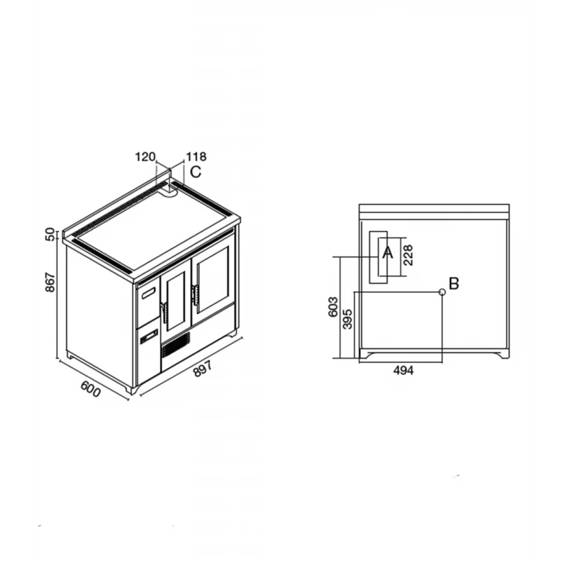 - Mesures: L 89,0 x P 61,9 x H 91,7 cm