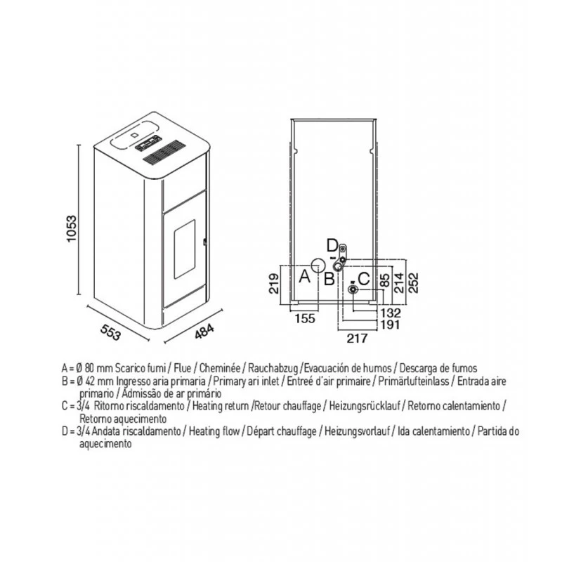 - Tuyau de sortie des fumées (mm) : 80