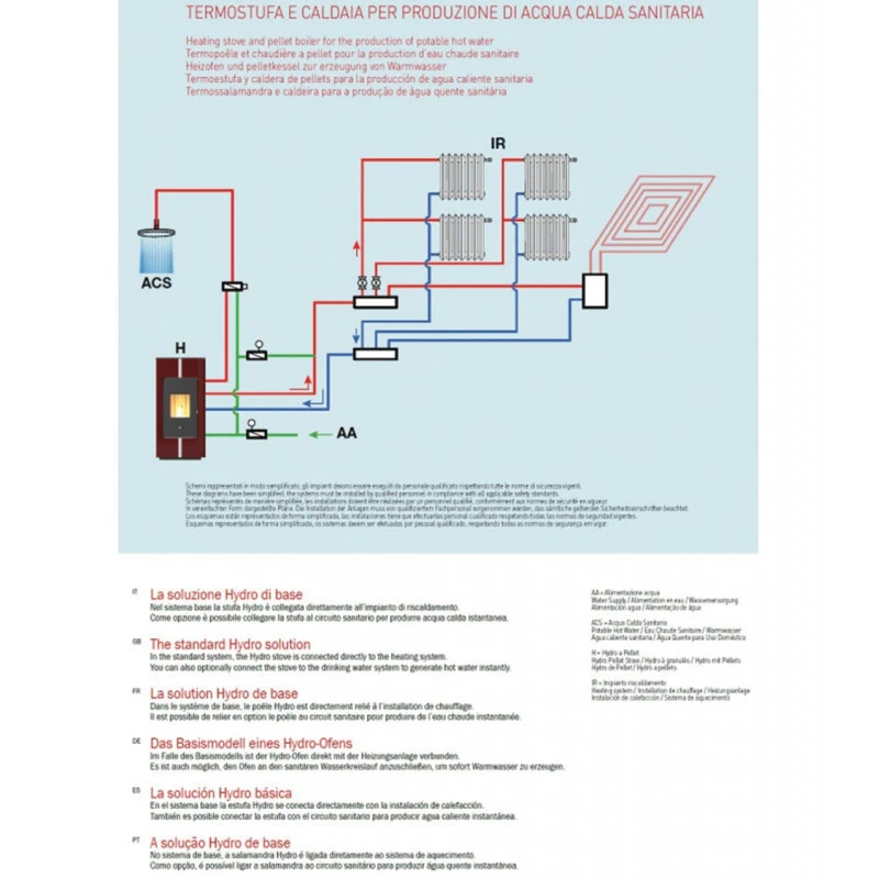 - Consommation de pellets: max 3,7 kg/h – min 0,9 kg/h