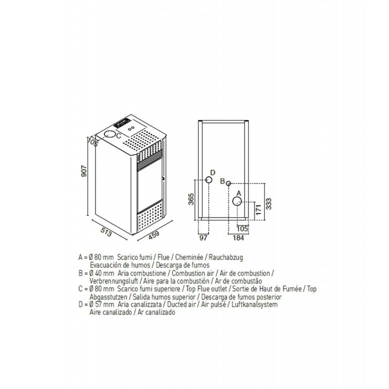 - Consommation de pellets: max 1,9 kg/h – min 0,7 kg/h