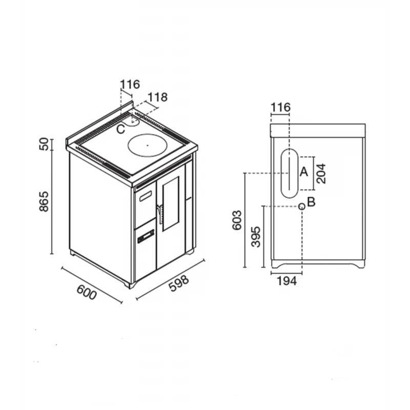 - Consommation de pellets: max 1,6 kg/h – min 0,6 kg/h