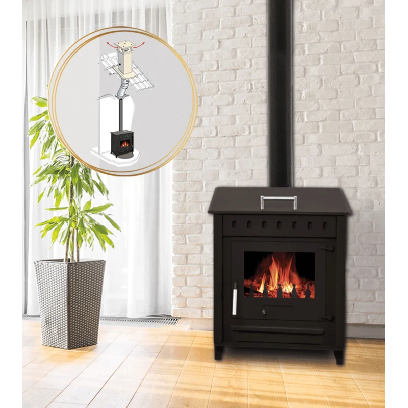 Pack Poêle à bois + conduit 150 Juan 14kW de chez INTERSTOVES c’est :