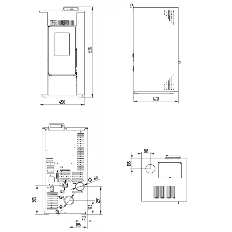 - Diamètre de sortie fumées : 80 mm