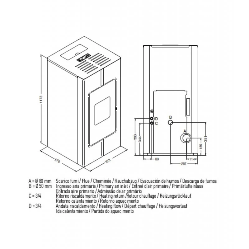- Consommation de pellets: max 5,4 kg/h – min 1,1 kg/h